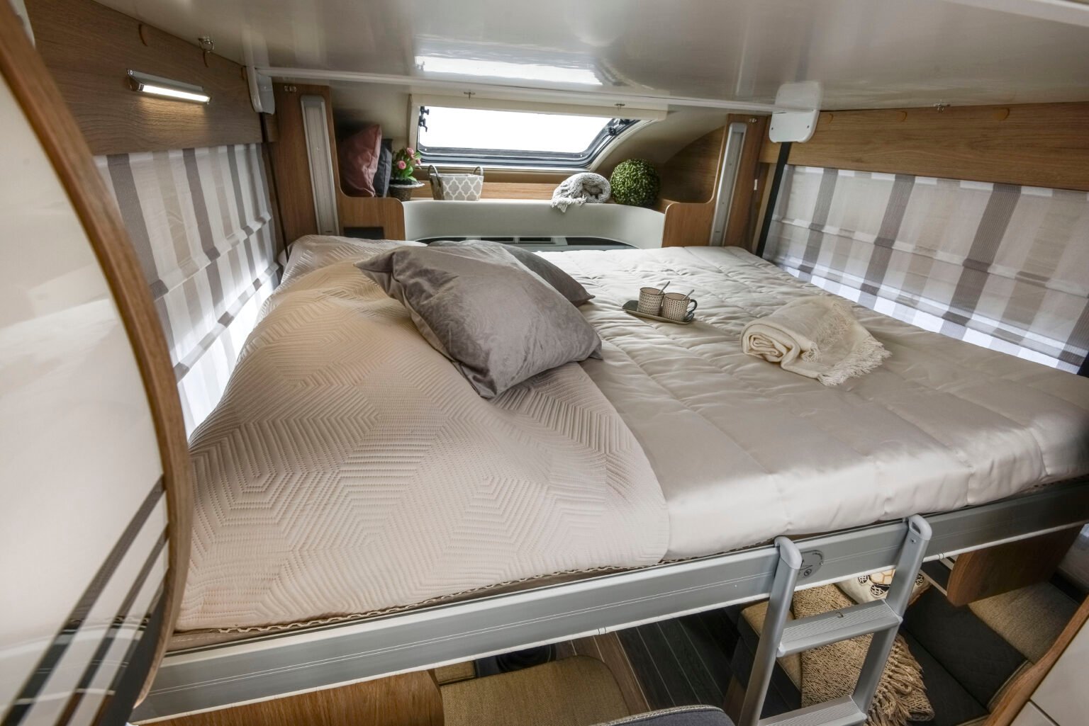Embark on an unparalleled journey of comfort and style with the Roller Team Auto-Roller 707, a motorhome designed to perfection for families who seek the ultimate travel experience. Crafted by Italy’s leading manufacturers, this exceptional vehicle offers six spacious berths, ensuring ample sleeping arrangements for every family member. The large front lounge creates a welcoming and luxurious living space, perfect for relaxing after a day of adventure or enjoying family meals together. At the rear, two single beds provide a private and comfortable sleeping area, ideal for children or guests. Thoughtfully integrated storage solutions provide ample space for all your essentials, keeping the interior organized and clutter-free.